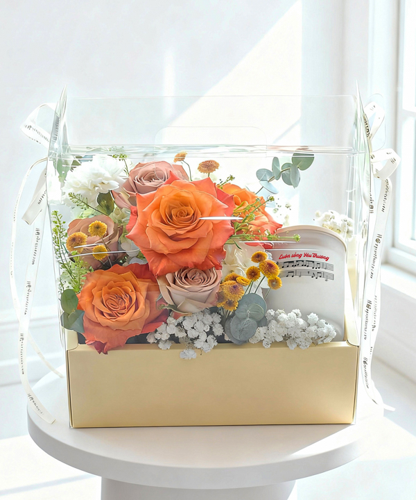 Hộp hoa tươi kết hợp nến thơm là sự lựa chọn hoàn hảo dành cho những ai yêu thích sự tinh tế và lãng mạn. Với thiết kế hộp giấy kết hợp nhựa trong suốt, sản phẩm mang đến vẻ đẹp sang trọng, giúp tôn lên sự rực rỡ của từng bông hoa. Sự kết hợp giữa những gam màu nhẹ nhàng của hoa lá tạo nên tổng thể hài hòa, đầy cảm xúc. Điểm nhấn đặc biệt là hộp nến thơm với thành phần tự nhiên từ sáp đậu nành, tinh dầu nguyên chất (5%), mang đến hương thơm hoa hồng ngọt ngào, giúp thư giãn và tạo không gian ấm cúng. Thời gian cháy kéo dài từ 20-50 giờ, phù hợp để trang trí không gian sống hoặc làm quà tặng ý nghĩa cho những dịp đặc biệt. Để đảm bảo an toàn, nến cần được bảo quản nơi khô ráo, tránh xa trẻ em, vật nuôi, vật dễ cháy và sử dụng đĩa lót cách nhiệt khi thắp sáng.
