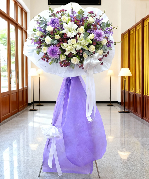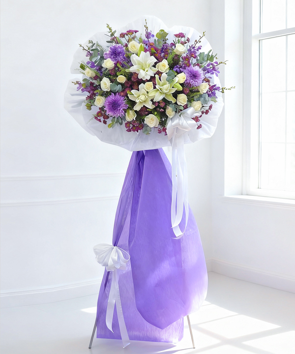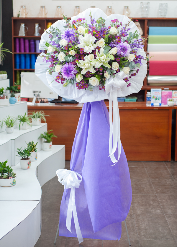 Trong cuộc sống chúng ta mất bất cứ thứ gì chúng ta cũng có thể có lại được , nhưng khi chúng ta mất vĩnh viễn một người thân hay một người bạn chúng ta không bao giờ tìm lại được. Kệ hoa chia buồn “Cõi vô thường” được kết từ hoa lan, hoa hồng và các phụ liệu khác Hoayeuthuong.com sẽ thay mặt bạn đưa tiễn họ và chia sẻ cùng gia đình họ.