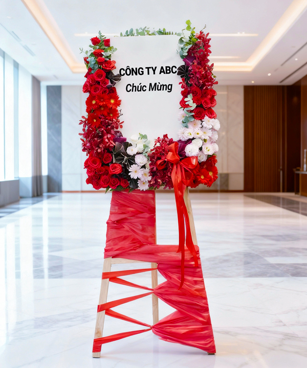Kệ hoa với tone đỏ rực rỡ cùng kiểu dáng hiện đại thật sự nổi bật so với các kệ hoa truyền thống. Kệ mang ý nghĩa về một lời chúc tấn tài tấn lộc. Thích hợp tặng trong dịp chúc mừng, khai trương, kỉ niệm…