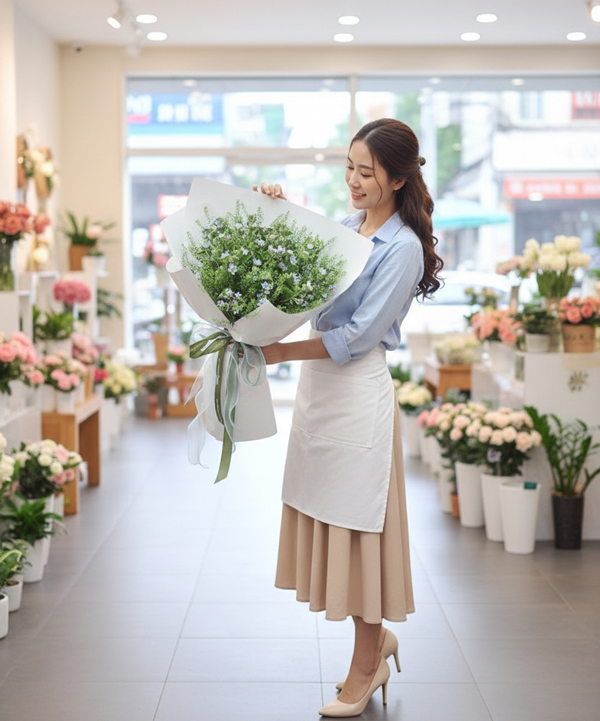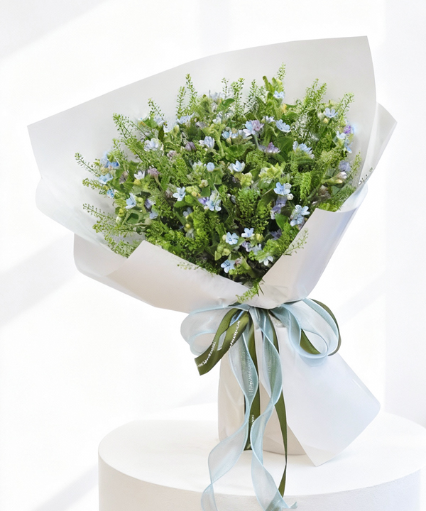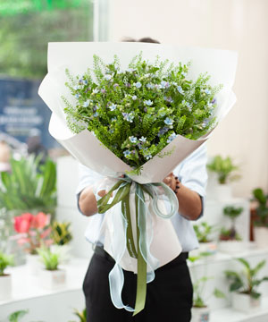 Bó hoa mang phong cách garden – đồng nội tự nhiên, được kết hợp từ hoa sao xanh nhập khẩu và green bell (cỏ đồng tiền). Hoa sao xanh với sắc xanh baby siêu dễ thương, trẻ trung và hiện đại, tạo điểm nhấn tinh tế giữa nền xanh mướt mát. Tổng thể bó hoa gợi cảm giác tươi mới, bình yên và tràn đầy năng lượng tích cực – món quà lý tưởng cho những ai yêu sự nhẹ nhàng, tự nhiên và tinh tế.